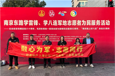3月5日,为了纪念延安双拥运动80周年、毛泽东等老一辈革命家为雷锋同志题词60周年、“南京路上好八连”命名60周年,上海公司志愿服务队来到南京路步行街,参与由上海市警备区、上海市双拥工作领导小组办公室指导开展的“南京东路学雷锋、学八连军地志愿者为民服务活动”。“南京路上好八连”及包括融通地产上海公司等数十家知名企业、医院、协会等机构联合参与了此次活动。