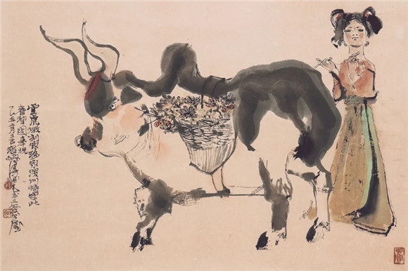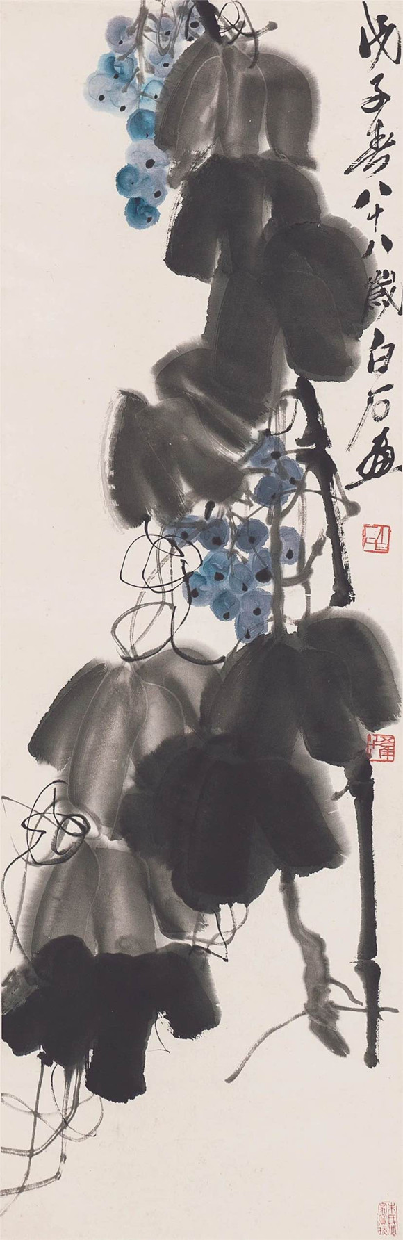 齐白石的《葡萄图》也是本次展览的精品之作,这幅作品是齐白石晚年的作品,葡萄粒多,因而寓意“多子多福”。藤条、墨叶之间,晶莹剔透,犹如一串串紫色的明珠,呈现出旺盛的生机,也营造了画面明朗乐观的基调。展览中,沈尹默的书法作品笔势遒劲有力、流畅自如,极富韵律美感,给人以沉稳、庄重、高贵的感觉。程十发的《春犁图》,寥寥数笔,便能把其之精神写到极致,笔墨精湛洒脱,气韵生动活泼,抒情又浪漫,极其难得。