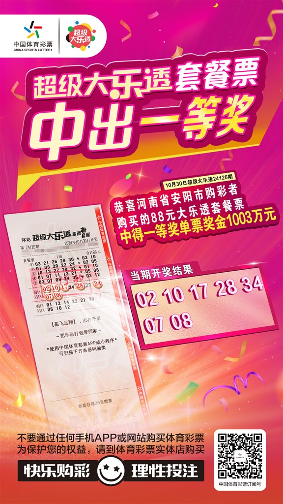 10月30日,体彩大乐透第24126期开奖,当期全国中出5注一等奖,其中1注花落河南安阳,中奖彩票为体彩大乐透88元套餐票,单票收获奖金1003万元。