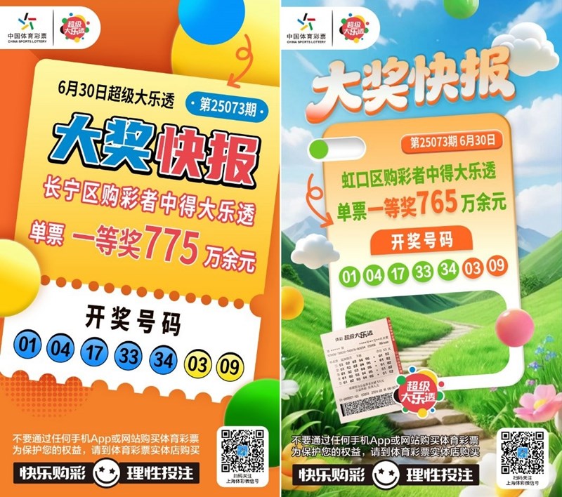 两注一等奖!长宁、虹口购彩者喜中体彩大乐透25073期头奖