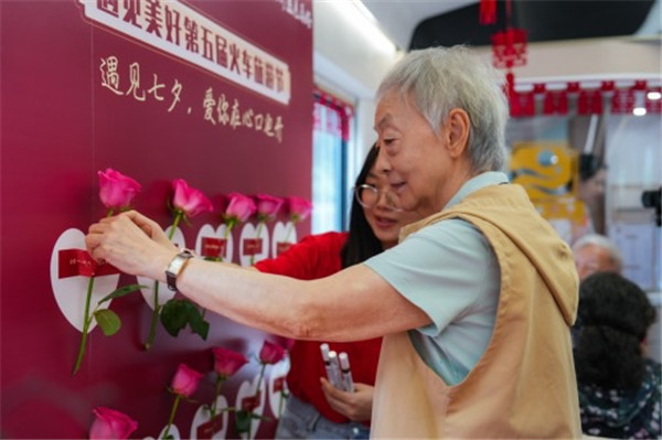 东方网8月27日消息:近日,一列满载深情与祝福的特色旅游列车从郑州站鸣笛启程,标志着遇见美好文旅第五届火车旅游节“遇见七夕爱你在心口也开”主题活动的举办。本次活动创新打造“移动的婚礼殿堂”,通过一系列富有中华传统文化韵味和浪漫色彩的互动环节,鼓励中老年人勇敢表达情感,在铁路沿线谱写动人的爱情篇章。