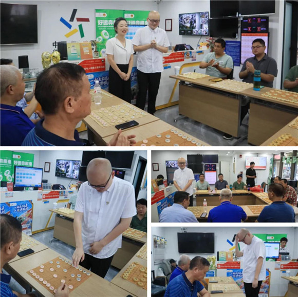 海选赛期间,崇明区体彩办携手崇明区象棋协会积极开展海选赛进商圈及网络团体赛活动。以长宁区、徐汇区为代表的各区体彩管理机构在海选赛期间精心组织,长宁07632、徐汇05262等一批“体彩+象棋”门店为象棋爱好者提供了对弈交流的场地。同时,吾家小舟棋社、北外滩象棋社、新八特棋社旅游群、松江区棋友群、闵行区棋友群等知名上海象棋社团积极组织棋友们参与线下打卡。9月18日,第十五届全运会象棋男子个人公开组冠军,象棋大师刘奕达走进静安区普善路体彩店,以“一对八”的形式与8名棋友展开车轮战,比赛现场选手们酣畅对弈,“棋”乐融融。