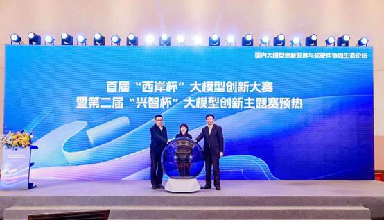中国信息通信研究院副总工程师王爱华介绍了首届“西岸杯”大模型创新大赛暨第二届“兴智杯”大模型创新主题赛的情况。随后,上海市经济和信息化委员会副主任张宏韬、上海市徐汇区人民政府区委常委、副区长俞林伟、中国信息通信研究院副总工程师王爱华共同参与了大赛的预热仪式。