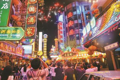 《繁花》拍摄地“黄河路”燃放烟花。本报记者 赖鑫琳 摄
