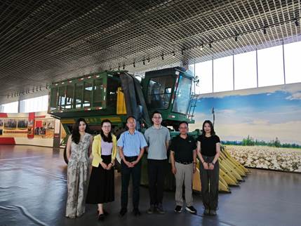 兵团六师共青团农场的红色记忆馆及兵团农业机械化主题展览,让团队成员们深切感受到了兵团农业现代化的震撼力量。调研团队成员阿丽亚·叶尔布拉提在看到高近五米的采棉机时感触颇深,“世界棉花看中国,中国棉花看新疆。目前,新疆棉的春种、夏管、秋收各阶段基本上实现了机械化作业。兵团的农业机械化让我既感动又自豪。”