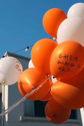 图说:现场参与者之一在气球上留下的“答案” 摄影 付梓奕