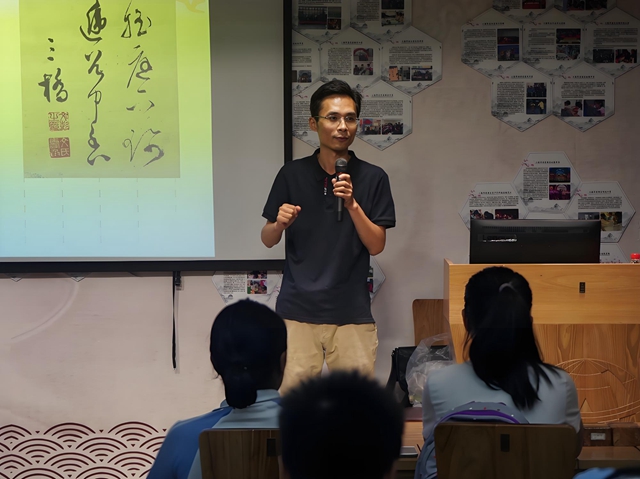为了满足世界各国留学生探访中国艺术、体验传统文化的热切需求,笔者所在的复旦大学国际文化交流学院开设了一系列美育实践课程。各国留学生们兴趣浓烈、潜心学习,多年来在复旦大学导师们的指导下,创作出不少体现中华文明精髓的作品。进入冬月后的复旦大学光华楼特为留学生们开辟了艺术创作成果展,主要陈列绘画、书法和篆刻。