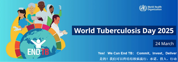 2025年3月24日是第30个“世界防治结核病日”,主题是“Yes! We Can End TB: Commit, Invest, Deliver(是的!我们可以终结结核病流行:承若、投入、行动)”。中国今年的宣传口号是“全面行动,全力投入,全民参与,终结结核”,号召每个人从自身做起,共同对抗结核病,助力健康中国建设。