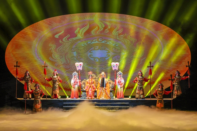 蒲剧《精卫填海》以“古不陈旧,新不离本”为创作理念,融合蒲剧绝活与现代舞美,以“武戏文唱”凝练诗意,以光影交融创设意境,在舞台上营造出既弥漫着浓郁魔幻色彩,又与故事情境丝丝相扣的舞台效果。尤其是舞台正面一大方椭圆形的LED屏紧随剧情演进,时而云雾缭绕,仙气飘飘,时而风急浪高,波涛汹涌,更以熊熊浴火烈焰,映衬精卫涅槃重生之后“探虎穴兮入蛟宫,仰天呼气兮成白虹”的猛士豪情,形成震撼人心的视觉效果。蒲剧《精卫填海》这种将剧种表演特色和舞台背景融汇一体的艺术构造被业内誉为“传统戏曲现代化探索的范本”。
