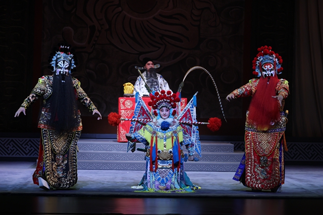 专场的三出折子戏分别是《碧桃花·拷打提牢》《穆桂英·辕门斩子》和《白蛇传·水斗、断桥》,这几出戏是近年来常见于婺剧舞台的经典剧目,观众并不陌生。《拷打提牢》是浦江乱弹,亦悲亦喜,悱恻动人。洪苏秀似玉堂春那样的女子,被诬入狱,意外被牢头夫妇收为义女,短暂的家庭温暖后竟是临死诀别的肝肠寸断。陈丽莉的表演细腻、丰富、极具层次,节奏上张弛有序、舒缓有致,【三五七】的悠扬抒情和【二凡流水】的悲戚长叹直击灵魂,一个善良温柔的悲剧人物跃然于舞台。《辕门斩子》很多剧种都有演绎,婺剧是以徽戏作为唱腔、穆桂英作为中心人物的。“这一个”桂英是娇媚的媳妇、“彪悍”的儿媳、乖萌的孙媳,有娇俏可人的一面,亦有飒爽英姿的风采,小女儿的情态塑造得特别可爱,性格色彩极其丰富,主演配角都很出挑,观赏性很高。《白蛇传》是滩簧的唱腔,作为婺剧的代表作,早就以独树一帜的“天下第一桥”风靡大江南北了。不愧是看家戏,好听!好看!也好玩!文武兼具、大开大合、赏心悦目,每一个角色都充满着蓬勃、强劲、粗犷的生命力!三出戏三个角色,分别以三种唱腔演绎出三种完全不同的性格、情绪色彩、舞台风格,并呈现出三种戏剧节奏,也给观众留下了三段完全不同的剧场体验!好的剧目选择已经成功了一半!整台戏丰富、全面、完整,十分利于演员综合技巧的展示和最大潜力的发挥。陈丽莉也是抓住了三出戏的特点和精髓,她的扮相亮眼、准确,音色大气、沉稳,表演细腻、到位,观众经久不息的掌声早已说明了一切。不得不说,三出戏风格完全不同,这也是最大的难点,对演员的基本功、创造力、情绪转换的能力都提出了更高的要求!三出戏之间没有其他小戏或是小视频的串场,匆忙的过场留给她的是极短的改妆时间。看完戏通过媒体报道才知道,陈丽莉演出当天身体不适,为了上台圆这个梅花奖的梦不得不在后台打点滴、吸氧,这种生理与心理的双重压力对于演员来说是一道多出的“附加题”。当然,她最终以精准、到位的表演节奏为这场综合考试赢得了高分!